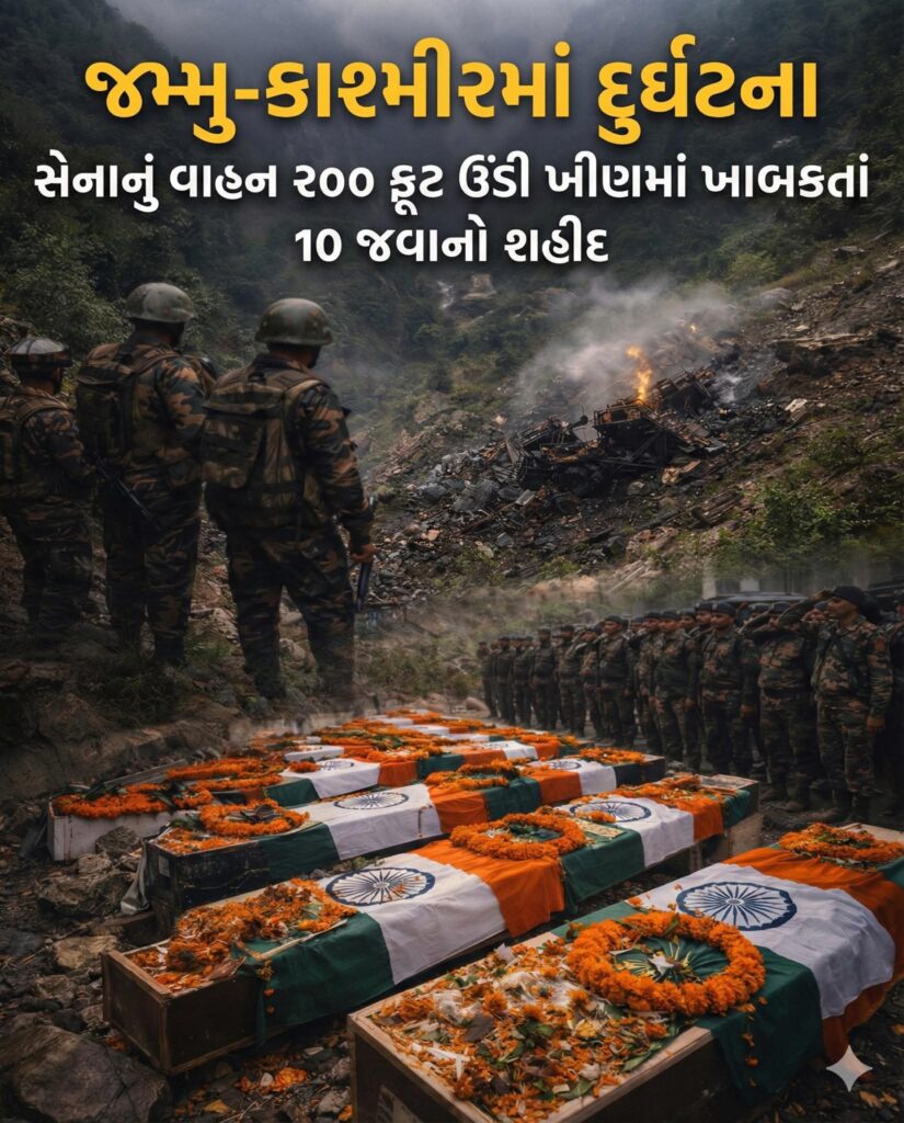 જમ્મુ-કાશ્મીરમાં વજ્રઘાત: સેનાનું વાહન 200 ફૂટ ઊંડી ખીણમાં ખાબકતા 10 જવાનો શહીદ, દેશભરમાં શોકની લહેર